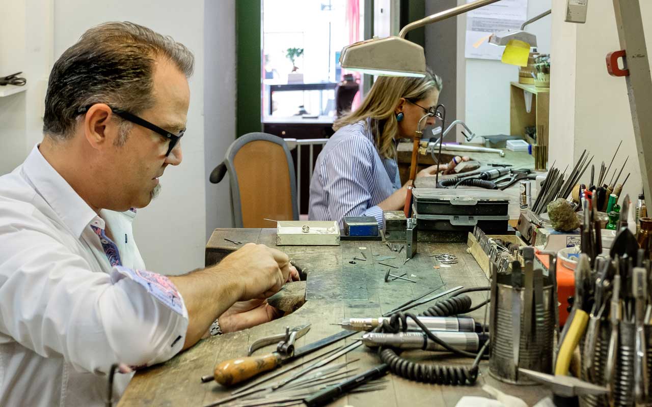 Manche Schmuckstücke erzählen schon vor ihrer Entstehung eine Geschichte. In unserem Atelier entstehen Unikate, die Ihre Persönlichkeit widerspiegeln – von der ersten Skizze bis zum fertigen Stück. Ob Verlobungsring, besonderes Geschenk oder eine Erinnerung, die Sie in Gold oder Silber festhalten möchten – wir begleiten Sie auf dem gesamten Weg.