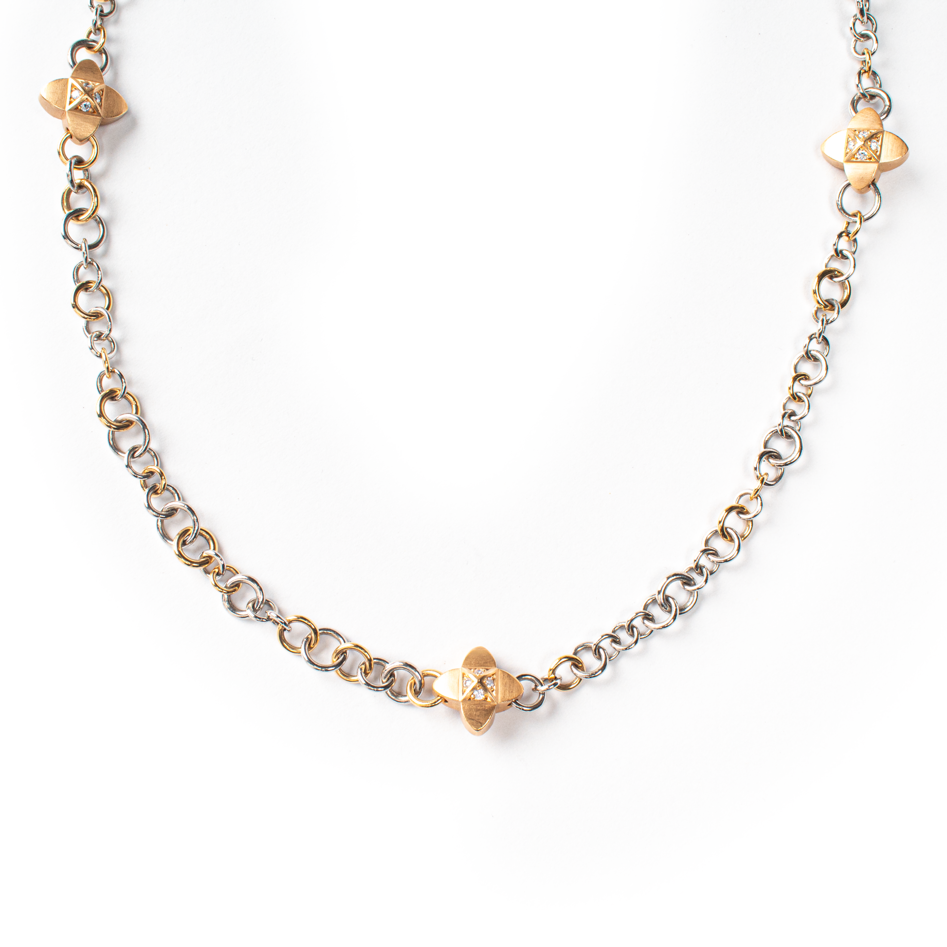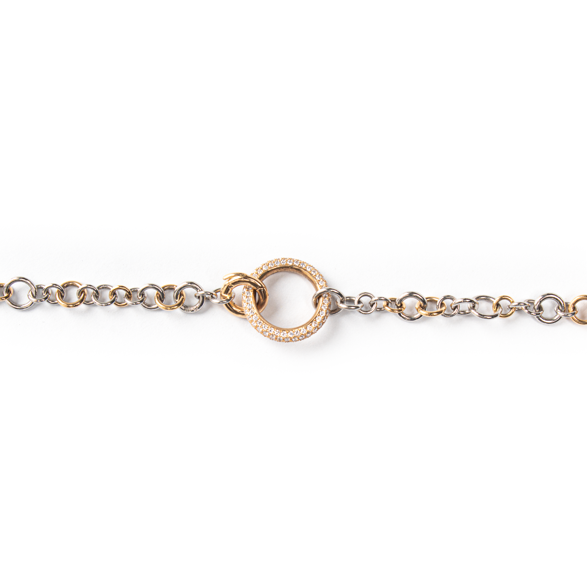 Collier aus 18 kt Roségold und 950er Platin mit 144 Brillanten (F/G, vvs) von insgesamt 0,70 ct sowie 56 Brillanten (F/G, vvs) von insgesamt 0,56 ct. Länge 77,5 cm. Handgefertigt und in verschiedenen Längen erhältlich.