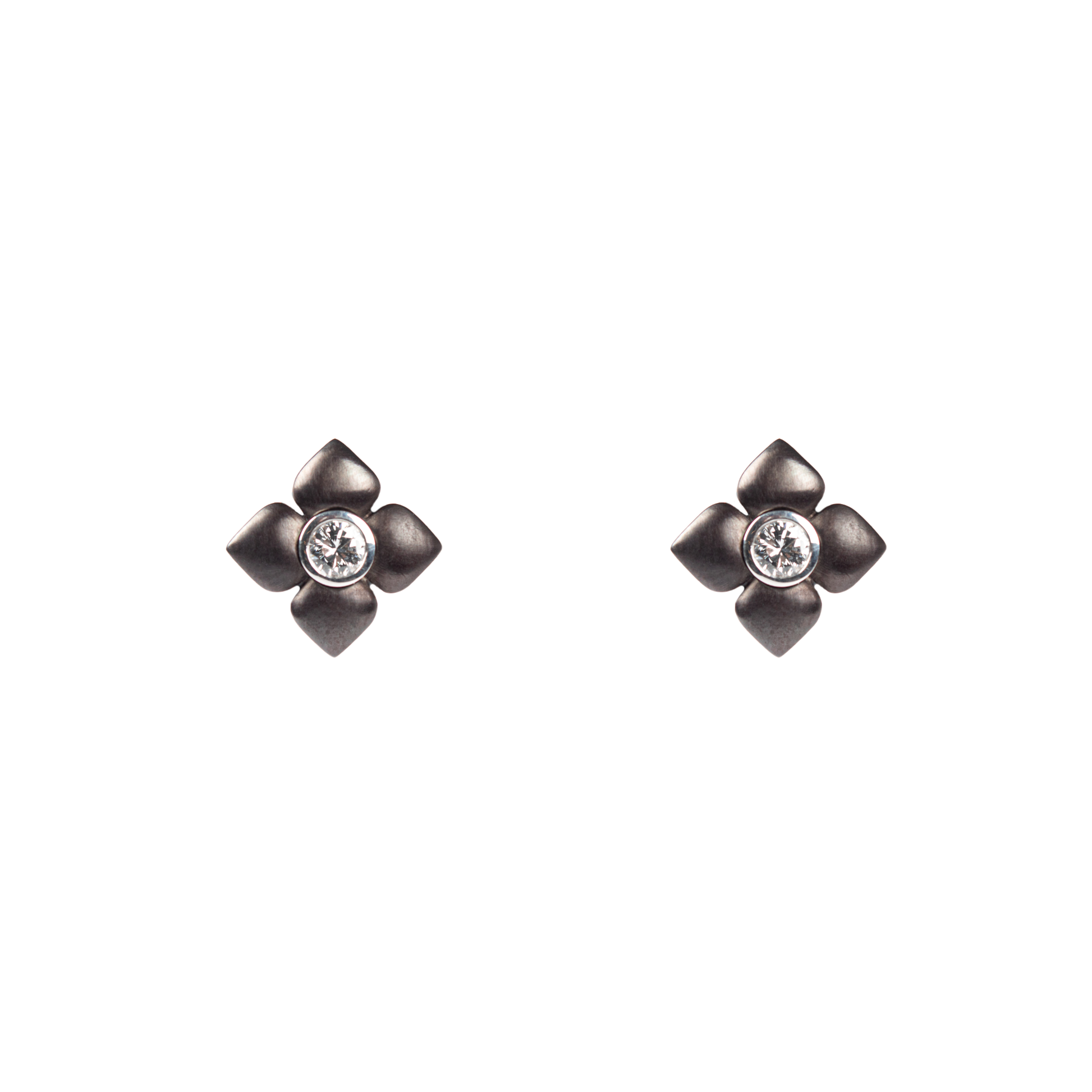 Ohrstecker aus 18 kt Weissgold und brüniertem Stahl mit zwei Brillanten (G/H, SI) von insgesamt 0,55 ct.