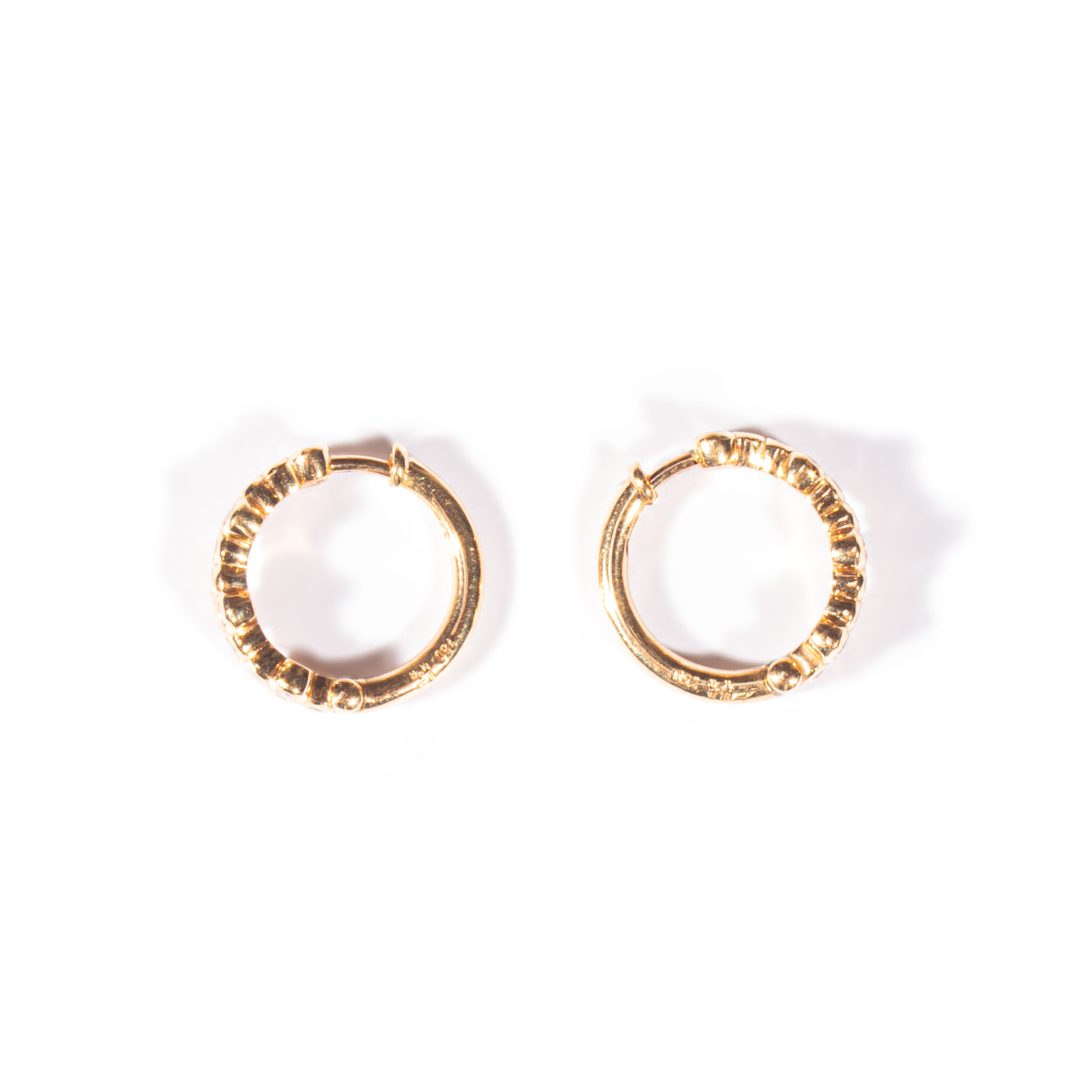 Creolen aus 18 kt Roségold, 15 mm Durchmesser, mit 30 Brillanten (F/G, vvs) von insgesamt 0,34 ct. In diese Creolen können verschiedene Steine und Perlen eingehängt werden.