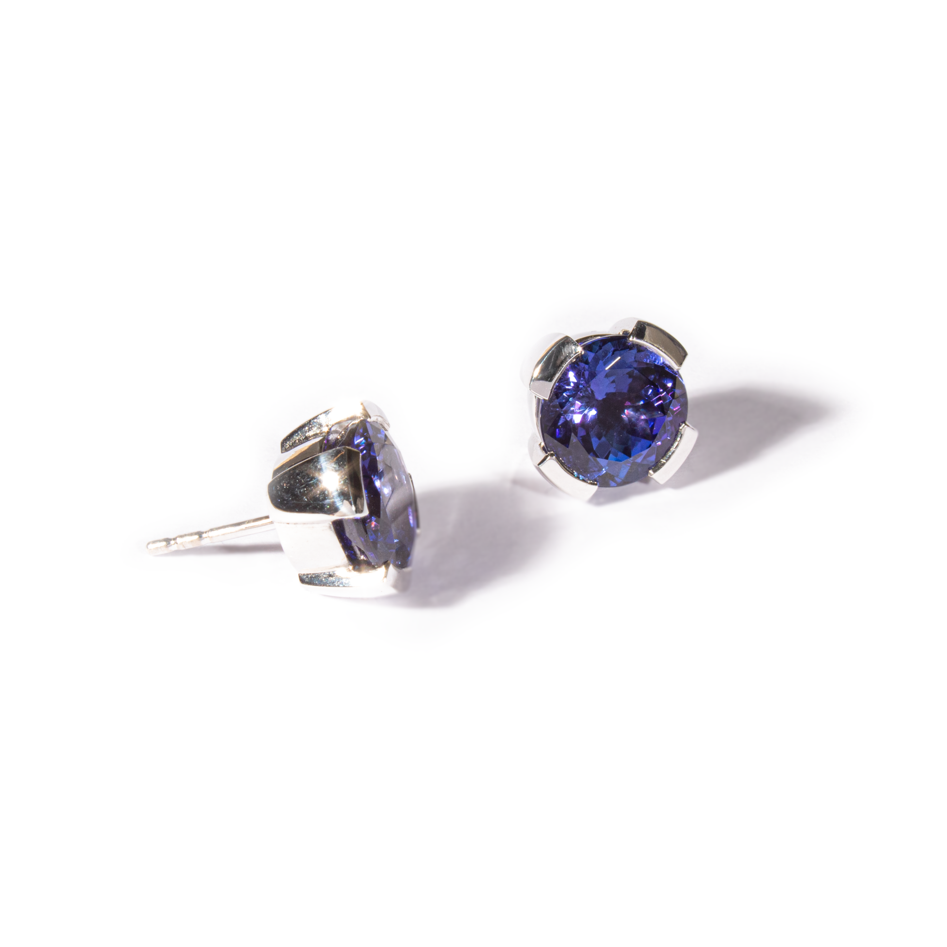 Ohrstecker aus 18 kt Weissgold mit zwei dunkelblauen Tansaniten von insgesamt 8,39 ct.