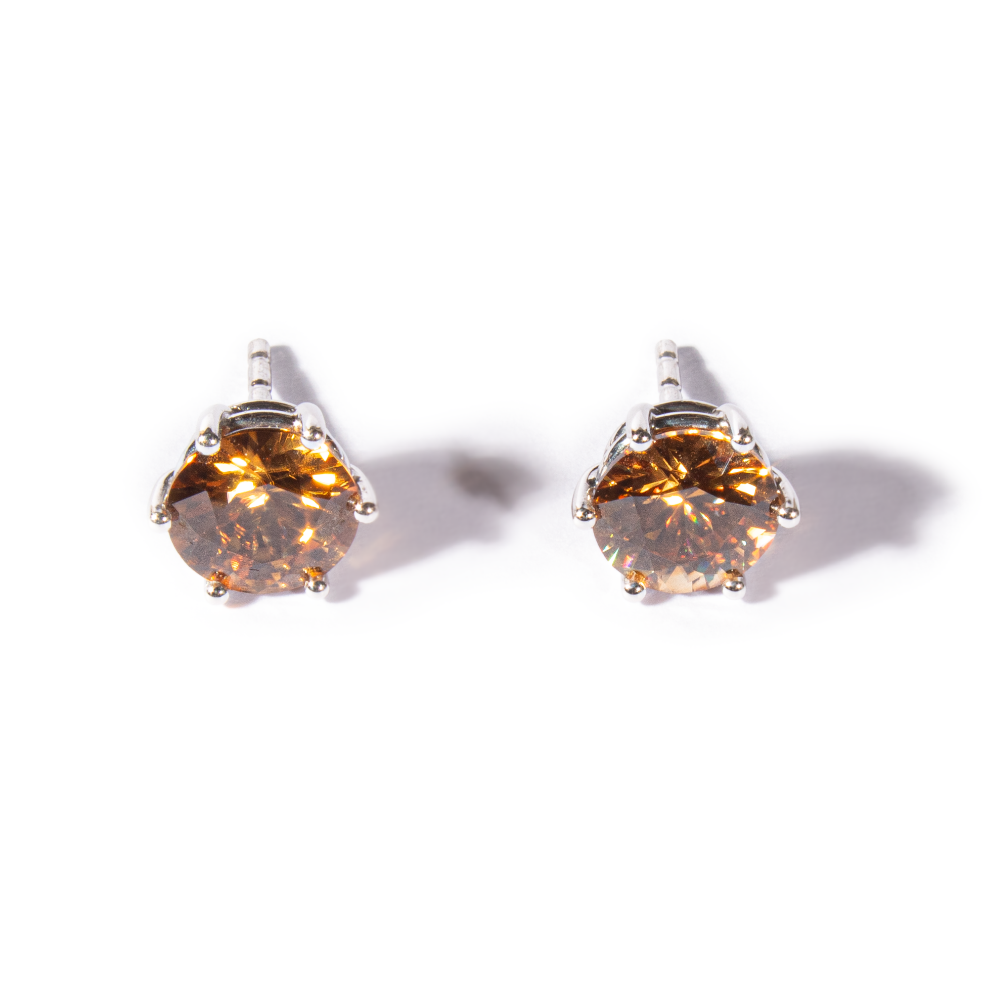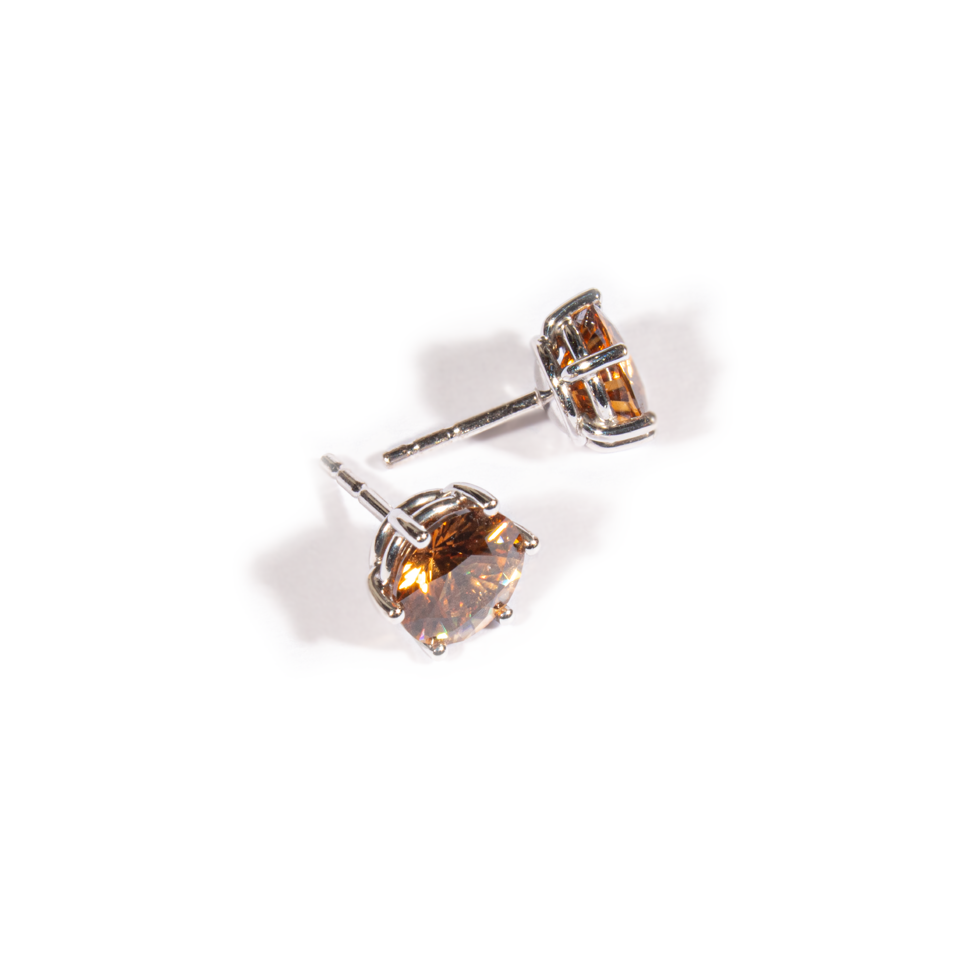 Ohrstecker aus 18 kt Weissgold mit zwei orange-braunen Zirkonen von insgesamt 4,06 ct.