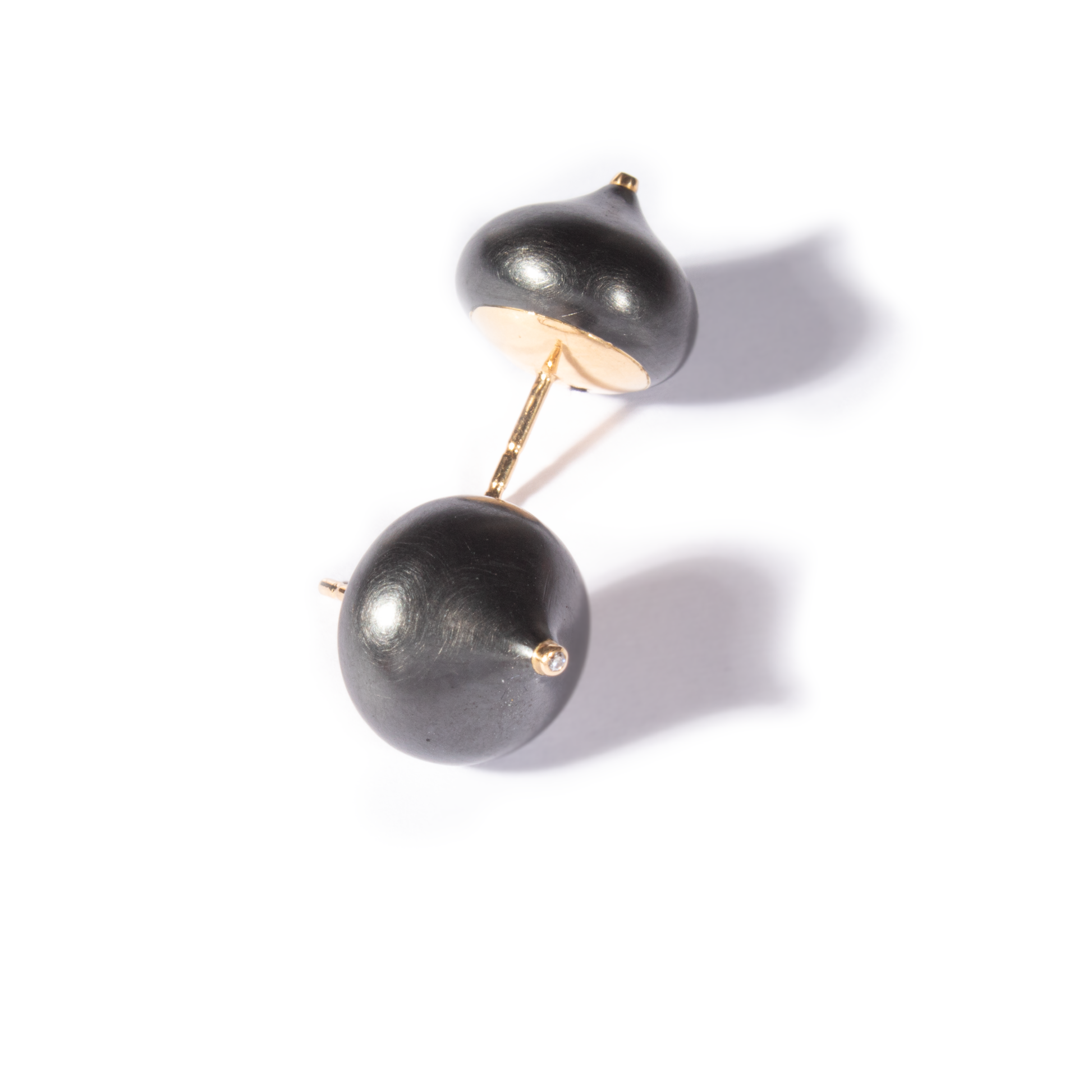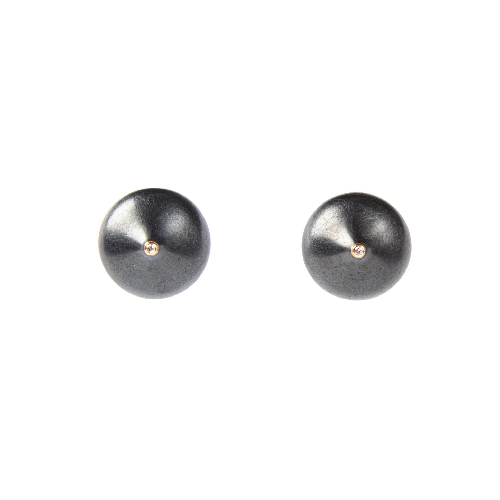 Ohrstecker aus 18 kt Roségold und brüniertem Stahl mit zwei Brillanten (TW, vvs) von insgesamt 0,015 ct.